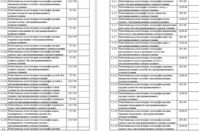 Ценовая политика рентгеновской компьютерной томографии для взрослого человека варьируется от 727 до 2157 грн, для детей — от 855 до 2328 гривен.