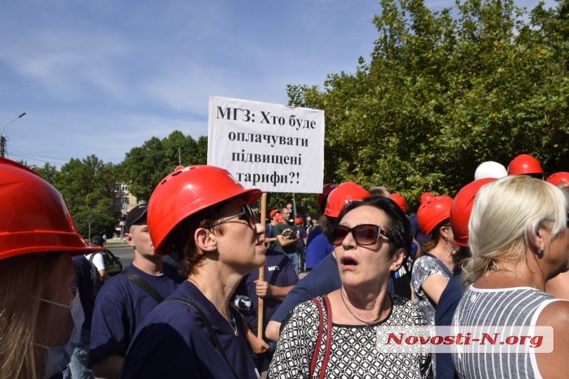 Люди заполонили всю территорию у входа в здание суда и на тротуаре напротив. Митинговать пришли как сторонники завода, так и активисты, которые выступают против работы НГЗ. Заводчане держат в руках плакаты с надписями «Кто кормит наших детей?», «Закрытие НГЗ — это специально спланированная акция», а также «Беспредел экорейдеров поощряется государством».