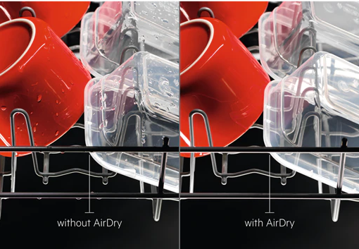 В некоторых посудомойках после завершения цикла сушки, посуда остается запертой в машине, пока хозяйка не откроет дверцу. В машинах AEG с технологией ProClean есть опция Air Dry, открывающая двери автоматически после ополаскивания, за 10 минут до окончания цикла.