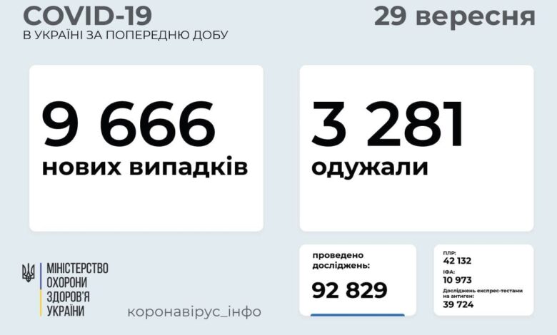 «За сутки 28 сентября 2021 года в Украине зафиксировано 9 666 новых подтвержденных случаев коронавирусной болезни COVID-19», — сообщили в Минздраве.