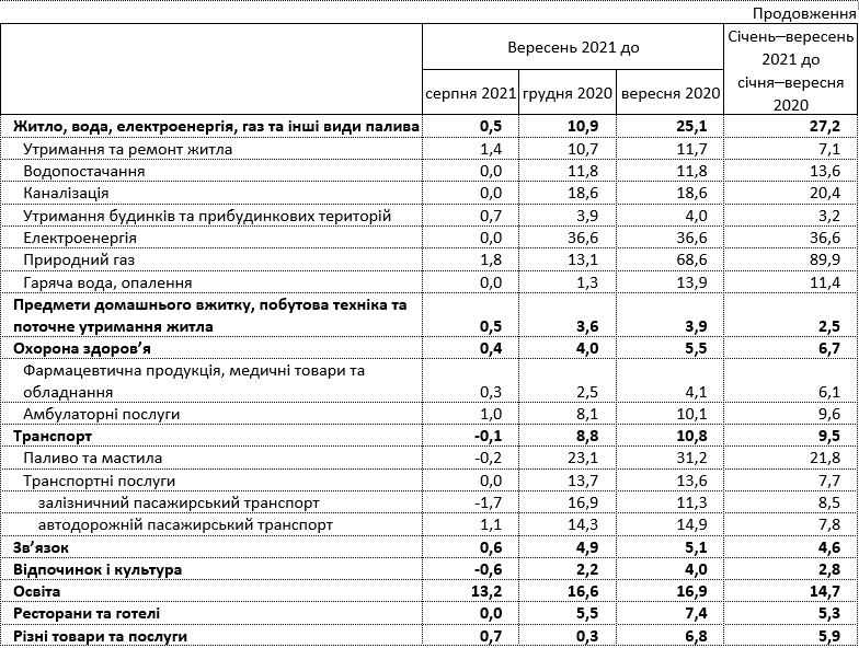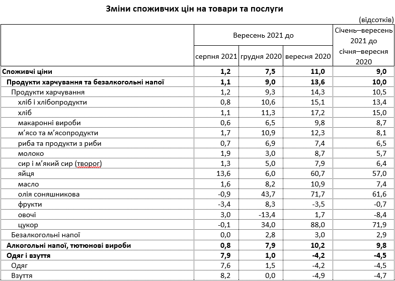 Потребительская инфляция в Украине в сентябре в годовом выражении — по сравнению с сентябрем 2020 года — составила 11%, увеличившись с 10,2% в августе и июле, о чём сообщается на сайте Государственной службы статистики.