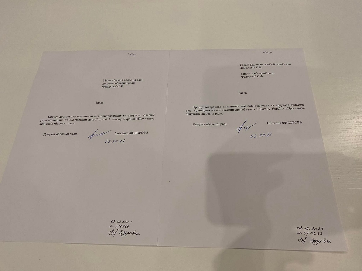 Напомним, что Светлана Федорова написала подобное заявление о прекращении полномочий депутата областного совета в конце октября, но это скорее было похоже на пиар.