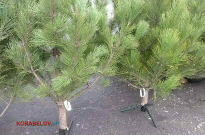 Торговля соснами по пр. Корабелов, 14. Цены на деревья (без чипов) здесь — от 50 до 500 грн.