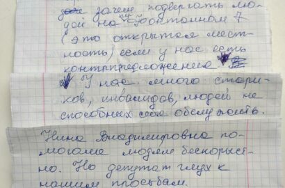 «Состоялся телефонный разговор с депутатом горсовета Горбенко… Темой была просьба жителей нашего микрорайона о выдаче продпайков главе нашего оргкомитета — человеку, которому мы доверяем… Нина Владимировна помогла людям бескорыстно.