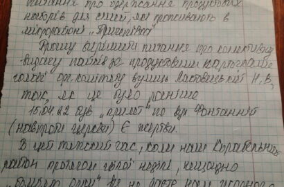 «І нас туди запрошують теж отримувати хліб за картками. Ми ж зовсім не проти, щоб люди з Об’їзної отримували там хліб, адже мешканців чимало, це і Бригадна, ПМК, пров. Львівський і т.д. Питання стоїть, що Петров обіцяв, що у нас на Причепівці буде своя точка (і місце ми знайшли), бо це зручно для всіх (і тих людей, що живуть у полі — по вул. Вітовській). Ми людей знаємо, відмічаємо в картках і в списках своїх. Домовлялися, що раз у три дні завозитимуть нам хліб. Але Горбенко вперлася, вибачте, рогами, бо наша громада не пішла їй «на поклон»…», — говорит Нина Ластовецкая.