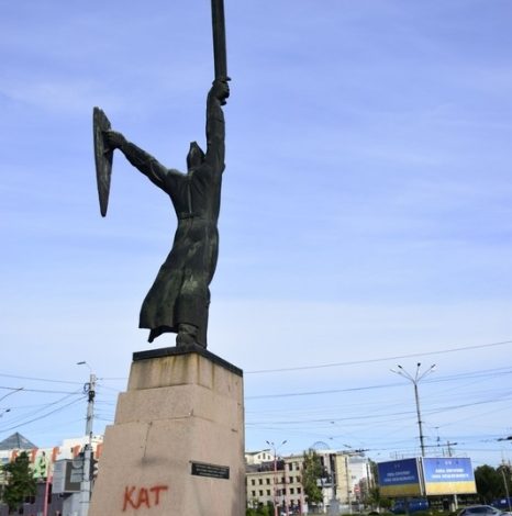 Варто відзначити, що на пам’ятнику був напис «кат». Зараз ветерани МВС намагаються його стерти. Протистояння триває.