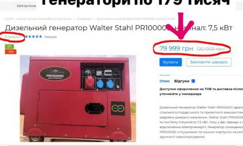 На майданчику “Ізі” такий новий генератор можна знайти за 77 тис. грн, а на майданчику “OLX” – за 98 тис. грн. Крім того, миколаївська мережа “П’ятак & П’ятачок” пропонувала в “Інстаграмі” такий генератор за 82 тис. грн, але потужність там вказана взагалі 6,5 кВт.