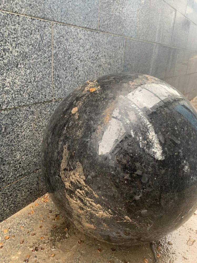 У Миколаєві минулої ночі вандали скинули велику гранітну кулю, а також пошкодили гранітні сходи та частину огорожі у Манганаріївському сквері (“Серце міста”), про що 21 квітня 2023 року повідомив мер Олександр Сєнкевич.