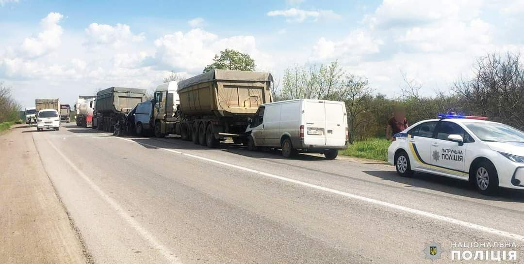 У понеділок, 1 травня, приблизно о 13:30 автодорозі М-14 «Одеса-Мелітополь-Новоазовськ» в районі повороту на місто Очаків сталася дорожньо-транспортна пригода за участі трьох вантажівок та двох мікроавтобусів Ford Transit, про що повідомили в Головному управлінні Національної поліції України в Миколаївській області.