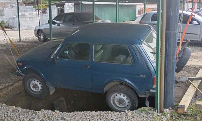 На стоянці в Миколаєві ледь не провалилося авто - під землею зруйнувалася каналізаційна труба