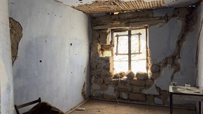 “Переживав війну я тут в селі, потім як почалися масовані обстріли по селу я виїхав, а потім вже коли повернувся восени, побачив, що будинок зруйнований. Пошкоджено дах, прильоти були, як тут прибирав, то побачив, що з мінометів”, — каже підліток.