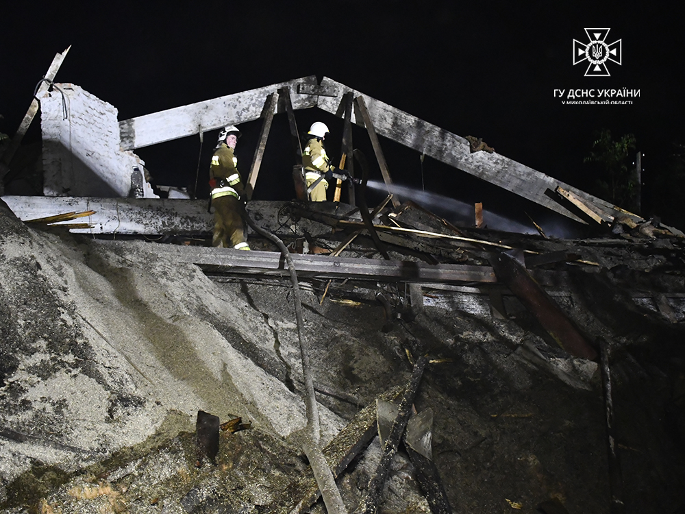 “Оперативними діями вогнеборці ліквідували пожежу на площі 200 кв. м. Постраждалих та травмованих немає. До гасіння залучалось 6 одиниць спецтехніки та 30 вогнеборців Головного управління ДСНС України у Миколаївській області”, – йдеться у повідомленні.