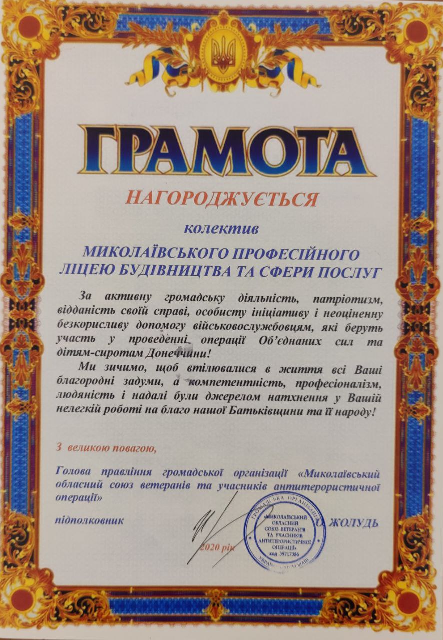 Немає сумніву, що чесним, відданим, готовим до захисту своєї Батьківщини буде шлях тих, кому путівку в життя дають такі наставники, як Микола Степанович.