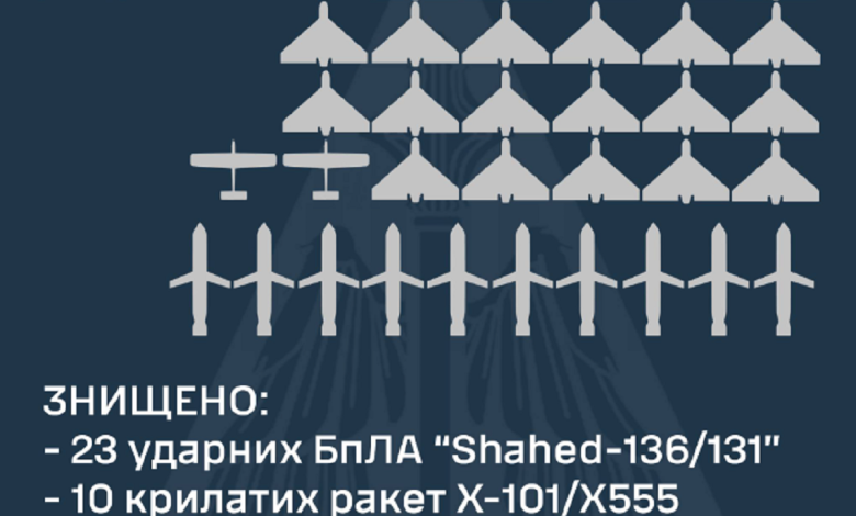 За ніч ВСУ збили 10 з 17 ворожих ракет та 25 з 31 дронів