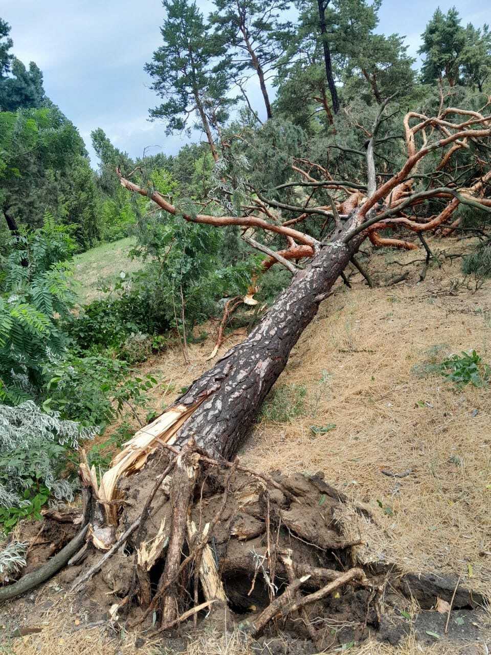 У четвер, 20 липня, у парку “Ліски”, що має статус пам’ятки садово-паркового мистецтва, злива та сильний вітер повалили майже три десятки насаджень. Як повідомляє пресслужба міської ради, постраждали здорові, великі сосни.