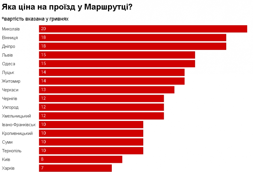 Зауважимо, що, всупереч цій інфографіці, в більшості маршруток Києва ціна також складає 15 грн, як і в Миколаєві (прим. ред. Кorabelov.info).