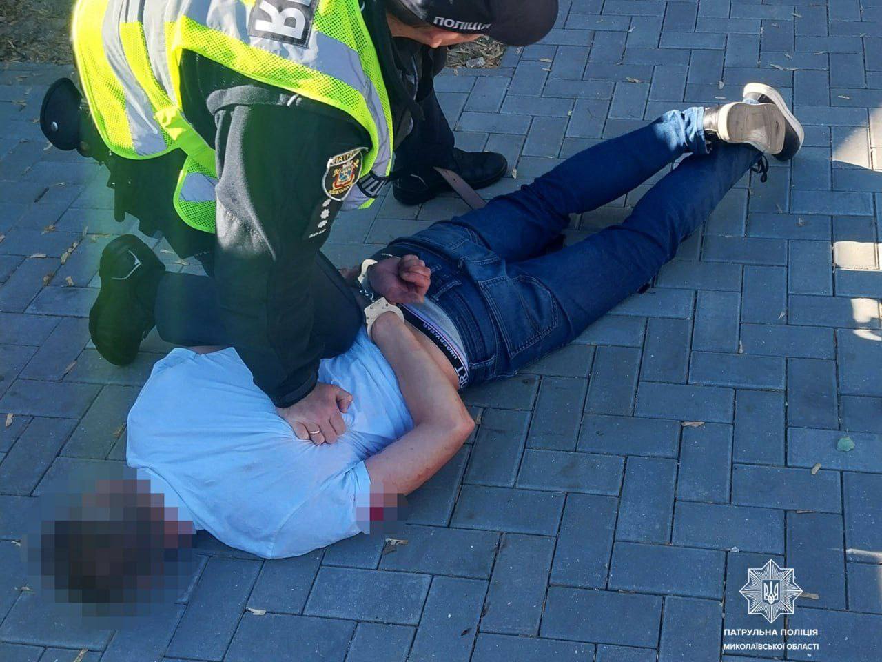 Від заявниці правоохоронці дізнались, що фігурант, знаходячись у магазині на вулиці Соборній, з відчиненої вітрини заволодів мобільним телефоном та втік у невідомому напрямку. Патрульні негайно прибули на місце події та розпочали відпрацьовувати прилеглі території. Вже за деякий час (за декілька кварталів від місця скоєння грабежу) інспектори помітили громадянина за орієнтуванням, який, побачивши патрульне авто, намагався втікти, але спроба була марною. Поліцейські затримали чоловіка та застосували до нього кайданки. Зловмисником виявився 30-річний миколаївець.
