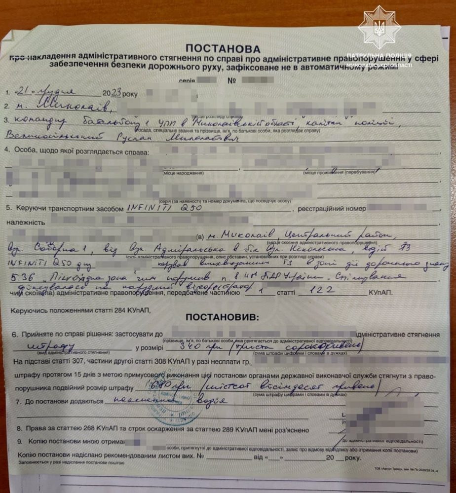 Патрульні виписали штраф чоловіку, який "літав" по Миколаєву на Infiniti