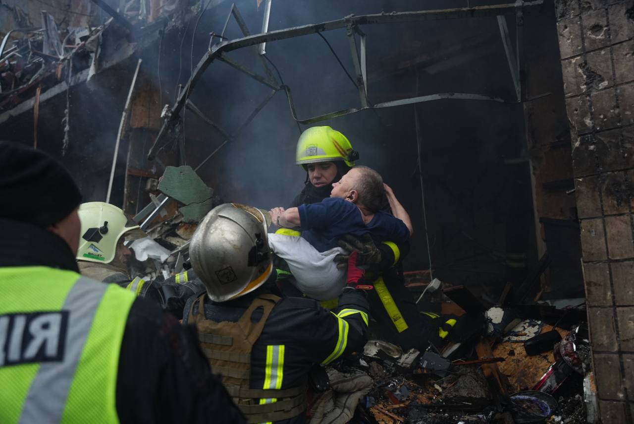“Київ. Оперативні служби працюють у 6-ти районах, де виникли 7 пожеж: Оболонському, Печерському, Подільському, Соломʼянському, Святошинському та Деснянському. Із багатоповерхівки в Соломянському районі евакуйовано понад 130 людей. Близько 20 врятовано надзвичайниками із заблокованих приміщень. Загалом у столиці зафіксовано понад 20 поранених.