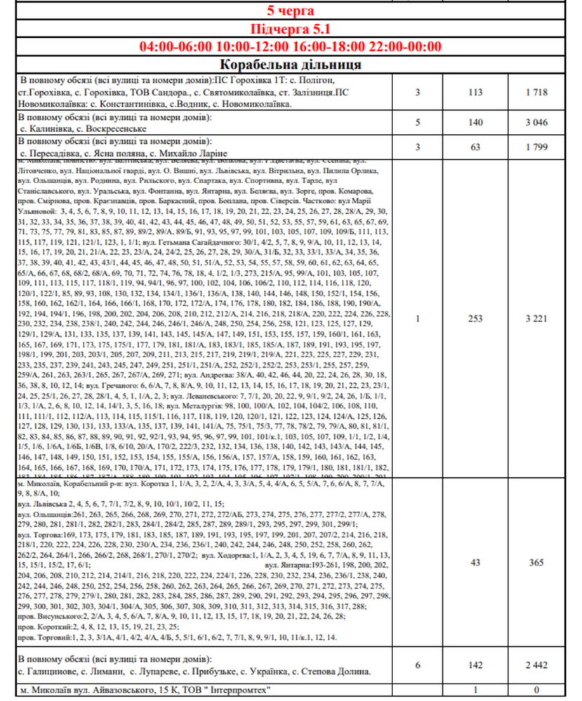 Нижче наведений список по Корабельному району. Дізнатись всі графіки відключення електропостачання можна за посиланням.