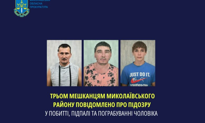 Підозра трьом мешканцям Миколаївського району у побитті, підпалі та пограбуванні чоловіка
