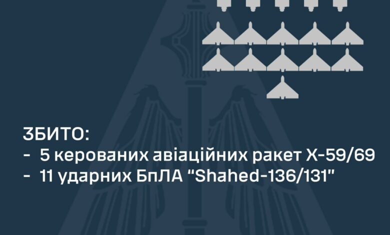 Нічний наліт: Повітряні Сили України знищили 5 авіаракет і 11 ударних БПЛА