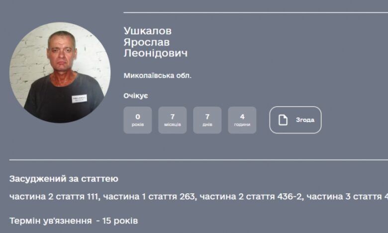 Житель Миколаєва Ярослав Ушкалов, якого засуджено до 15 років ув’язнення за звинуваченнями в державній зраді, незаконному поводженні зі зброєю та виправданні агресії РФ, звернувся з проханням обміняти його на українського військовополоненого. Він хоче відбувати покарання у Росії.