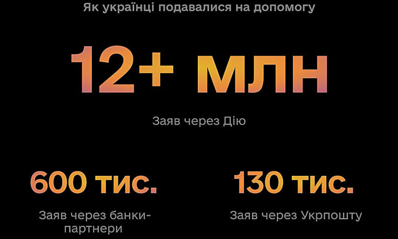 У Мінекономіки повідомили, що держава вже профінансувала понад 10 мільйонів заявок, поданих через Дію та банки-партнери. Окремо 1,7 мільйона осіб, серед яких пенсіонери, люди з інвалідністю та мешканці прифронтових територій, отримали допомогу через Укрпошту.