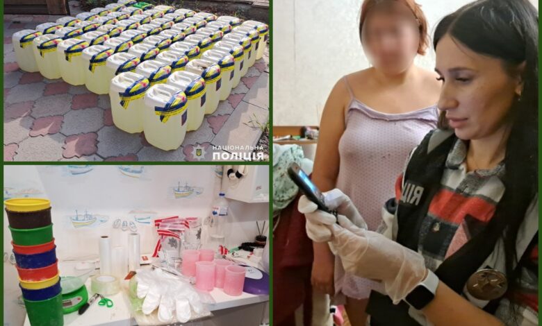 Під час обшуку у її помешканні виявлено майже 200 грамів амфетаміну, близько 500 літрів прекурсорів, мобільні телефони, SIM-картки, чорнові записи та інші докази.