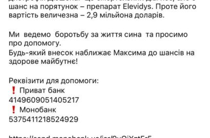 У 2020 році благодійна організація “БФ “ЕЛЬДАР — З НАДІЄЮ У СЕРЦІ” написала петицію на президента Володимира Зеленського з проханням втрутитися та забезпечити хворих всім необхідним лікуванням. Але тоді петиція не набрала достатню кількість голосів.