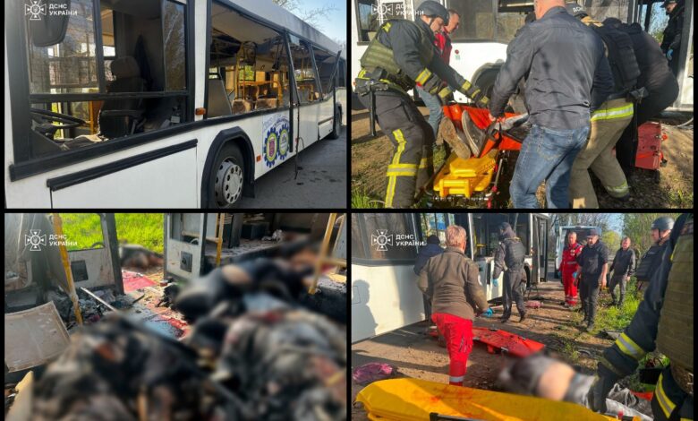 📌 Надзвичайно жорстокий удар російського FPV-дрона по цивільному автобусу в місті Марганець на Дніпровщині став причиною численних жертв – загинули 9 людей, серед них багато жінок, ще 49 постраждали, з яких 31 госпіталізовано, четверо у важкому стані.