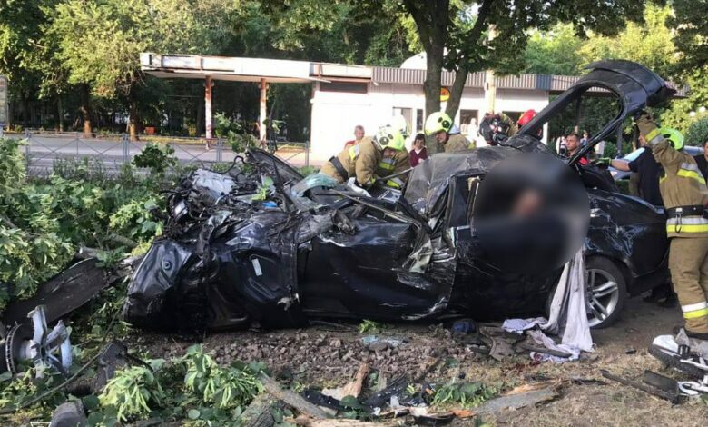 Удар був такої сили, що автівка знищила світлофор і два дерева, а сама перетворилась на купу металобрухту.