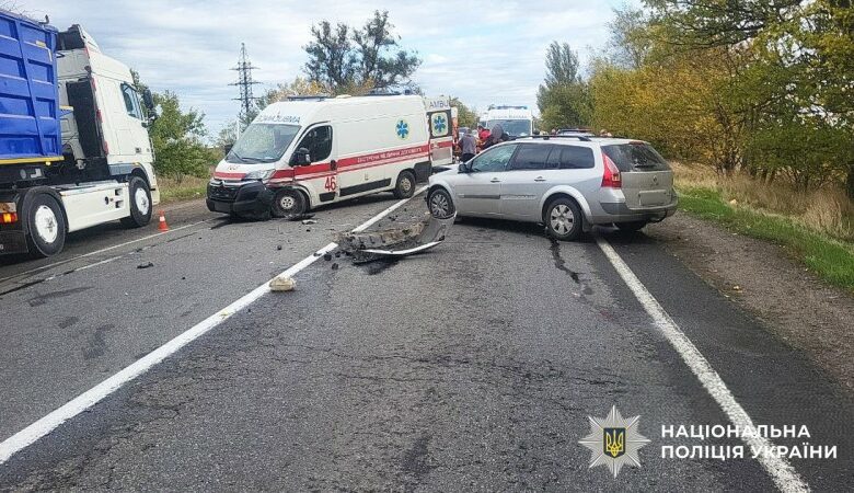 На автодорозі М-14 «Одеса–Мелітополь–Новоазовськ», поблизу селища Мирне, у середу, 22 жовтня 2025 року, близько 10:30 сталася серйозна аварія за участі автомобіля швидкої допомоги та легковика Renault Megan.