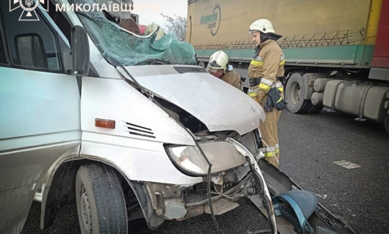 Під Миколаєвом мікроавтобус розтрощило вщент після зіткнення з вантажівкою DAF