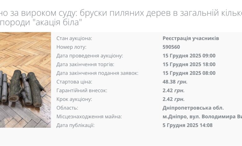 У Дніпрі державні виконавці дійшли до абсурду реальності воєнного часу: у місцевого жителя вилучили 12 дров акації, щоб частково погасити борг. Полінця офіційно арештували в межах виконавчого провадження та виставили на продаж через державний майданчик СЕТАМ. Стартова ціна — 48 гривень 38 копійок. Фото з лотом вже розлетілося соцмережами, викликавши хвилю жартів і дискусій про те, як працює система примусового стягнення.