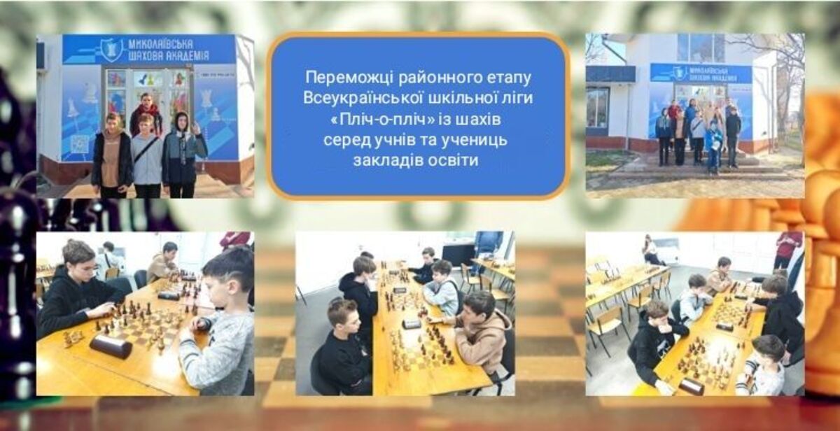 Як повідомили днями на Facebook-сторінці Миколаївського ліцею імені Олега Ольжича, у філії Миколаївської шахової академії відбувся районний етап змагань Всеукраїнської шкільної ліги з шахів «Пліч-о-пліч» серед учнів та учениць закладів загальної середньої освіти.