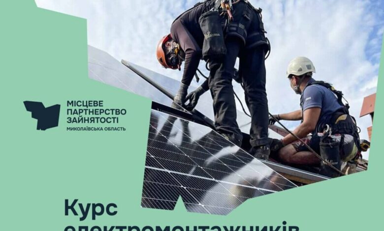 Місцеве партнерство зайнятості у Миколаївській області оголосило набір на навчальний курс з підготовки електромонтажників сонячних панелей.