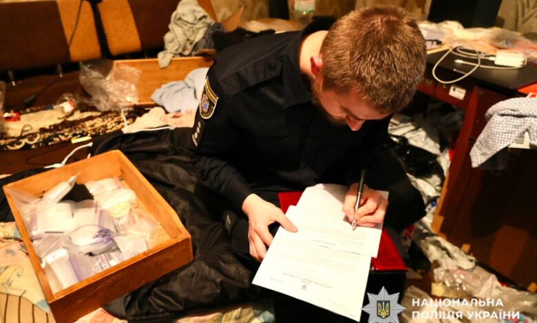 Під час санкціонованих обшуків за силової підтримки бійців спецпідрозділу КОРД та роти поліції особливого призначення правоохоронці вилучили: майже 400 грамів амфетаміну, понад 140 грамів Alfa-PVP, 126 грамів порошкоподібної речовини білого кольору, понад 70 грам канабісу, 18 згортків із психотропами та синтетичним психоактивним наркотиком, 17 пігулок психотропної речовини, а також Macbook, вакууматор, устаткування для фасування й пакування, порожні зіп-пакети, чорнові записи, банківські картки, електронні ваги, мобільні телефони та десятки мотків клейкої стрічки.