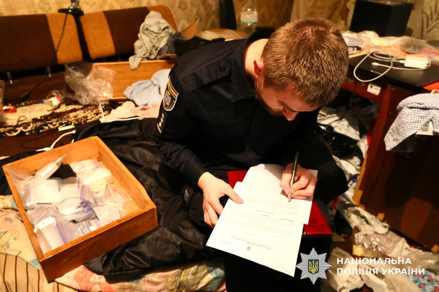 Під час санкціонованих обшуків за силової підтримки бійців спецпідрозділу КОРД та роти поліції особливого призначення правоохоронці вилучили: майже 400 грамів амфетаміну, понад 140 грамів Alfa-PVP, 126 грамів порошкоподібної речовини білого кольору, понад 70 грам канабісу, 18 згортків із психотропами та синтетичним психоактивним наркотиком, 17 пігулок психотропної речовини, а також Macbook, вакууматор, устаткування для фасування й пакування, порожні зіп-пакети, чорнові записи, банківські картки, електронні ваги, мобільні телефони та десятки мотків клейкої стрічки.