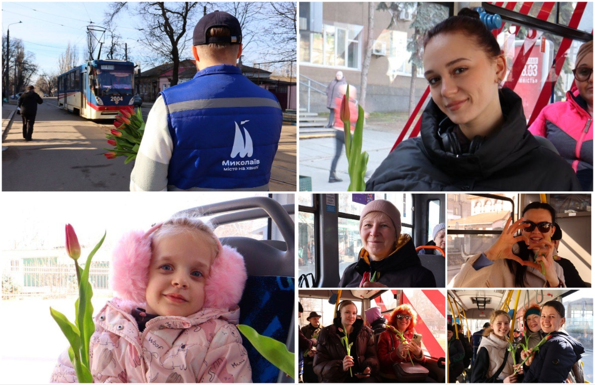 В Миколаєві до Міжнародного жіночого дня працівники КП “Миколаївелектротранс” привітали пасажирок громадського транспорту зі святом. 8 березня 2026 року жінкам під час поїздок дарували тюльпани як символ весни, тепла та вдячності.