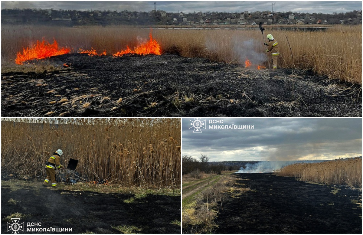 Як повідомили 19 березня 2026 року в ДСНС, протягом доби 18 березня на Миколаївщині знову фіксували пожежі на відкритих територіях. Рятувальники шість разів виїжджали на гасіння загорянь очерету та сухої трави. Осередки займання виникли на території Мішково-Погорілівської та Костянтинівської територіальних громад Миколаївського району, а також у містах Вознесенськ, Первомайськ і Миколаїв.