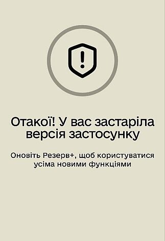 “Отакої! У вас застаріла версія застосунку. Оновіть Резерв+, щоб користуватися усіма новими функціями”