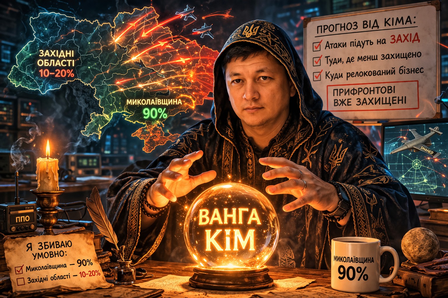 “Я вангую, що атаки підуть на захід наступного разу, туди, де менш захищено, куди релокований бізнес. Тому що прифронтові вже захищені. Я збиваю умовно 90 % того, що до мене летить, західні області – 10 чи 20”, – зазначив Віталій Кім.