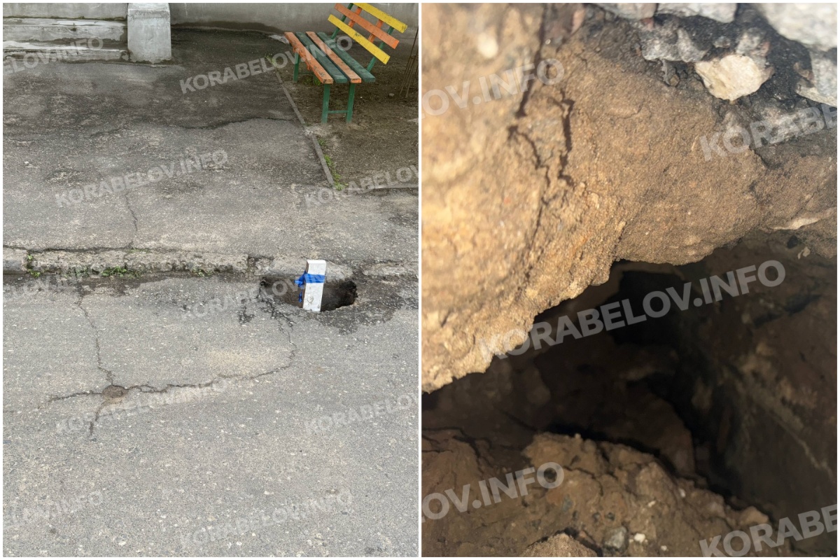 "Ситуація стрьомна": біля багатоповерхівки в Корабельному провалюється асфальт, а під ним - порожнеча