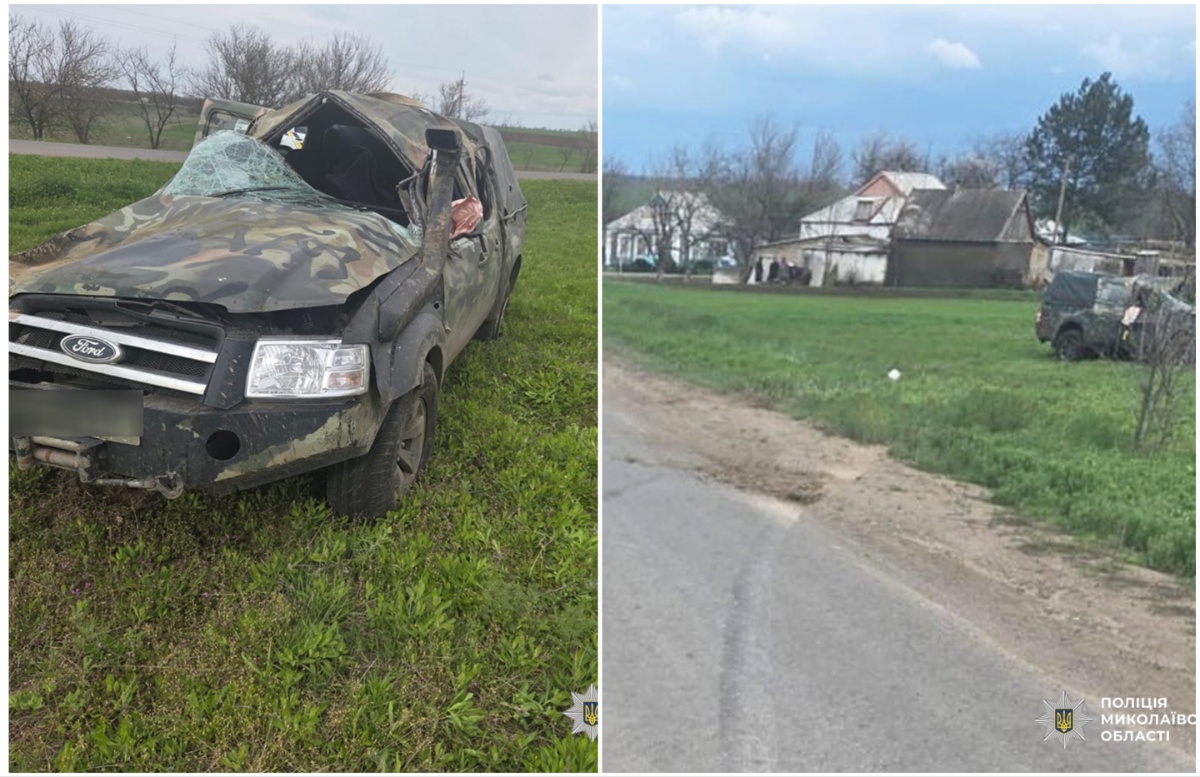 Фатальний виліт з дороги на Миколаївщині: один загиблий, троє скалічених у перекинутому пікапі