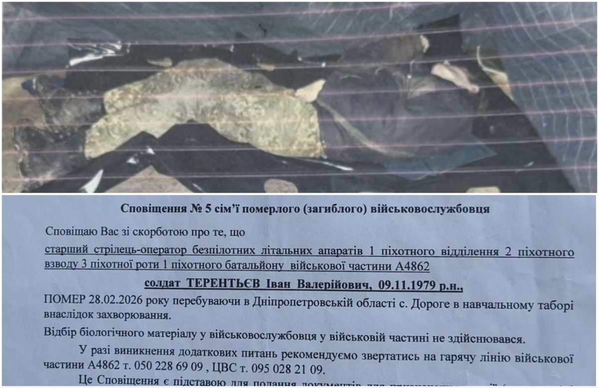 За даними видання, 46-річний Іван Терентьєв прибув до навчального центру військової частини 425 окремого штурмового полку “Скала” у Дніпропетровській області 25 лютого. Уже наступного дня він нібито поскаржився на погане самопочуття, а 28 лютого помер. Родину, як стверджують близькі, повідомили про це лише 7 березня, передавши “сповіщення про померлого військовослужбовця”.