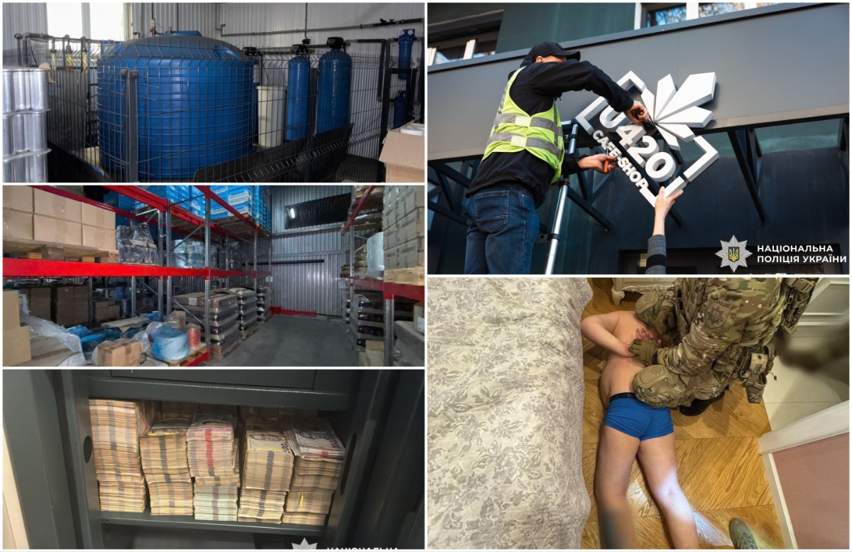Під час масштабної операції правоохоронці провели 281 обшук у Києві та ще 10 областях. Вилучено понад 54 тисяч літрів продукції, більше 12 тисяч джоінтів, тисячі пігулок і кілограми сумішей, а також готівку на суму понад 7 мільйонів гривень. Загальна вартість вилученого перевищує 75 мільйонів гривень. Арештовано 416 рахунків і заблоковано криптовалюти на майже 1 мільйон USDT.