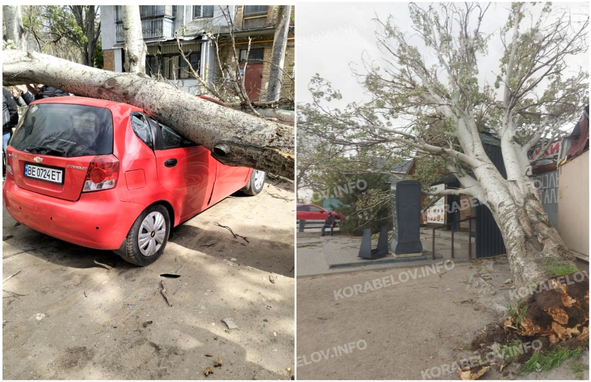 Кілька дерев повалено і в Корабельному районі. Одне з них впало на магазин у мікрорайоні Балабанівка. Ще одне – на проспекті Богоявленському (на так званому широкобальському перегоні), навпроти “Нової пошти”.