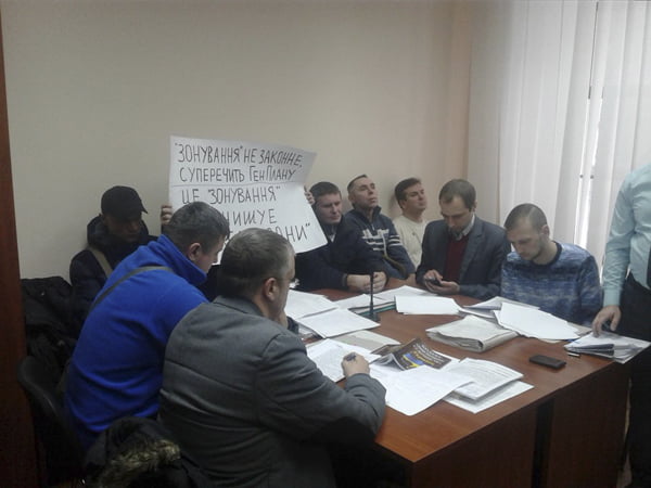 Перед початком засідання, перед будівлею суду був організований пікет. Його учасники скандували «Разом сила», «Геть антинародне зонування»….