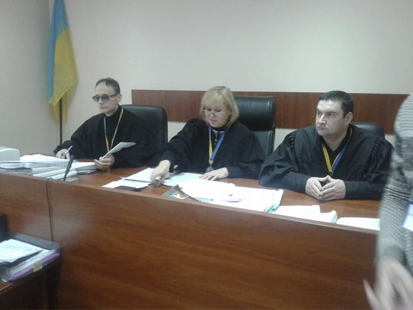 Невеличкий зал суду не зміг вмістити усіх бажаючих. Справу розглядала судова колегія в складі: Т. Танасогло — голова, суддів Д. Запорожана та Т. Яковлєва.
